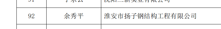 近日,中國建筑金屬結(jié)構(gòu)協(xié)會在全國范圍內(nèi),評選出109名2021 年度建筑鋼結(jié)構(gòu)行業(yè)巾幗模范,淮安市揚子鋼結(jié)構(gòu)工程有限公司董事長余秀萍同志成功入選。