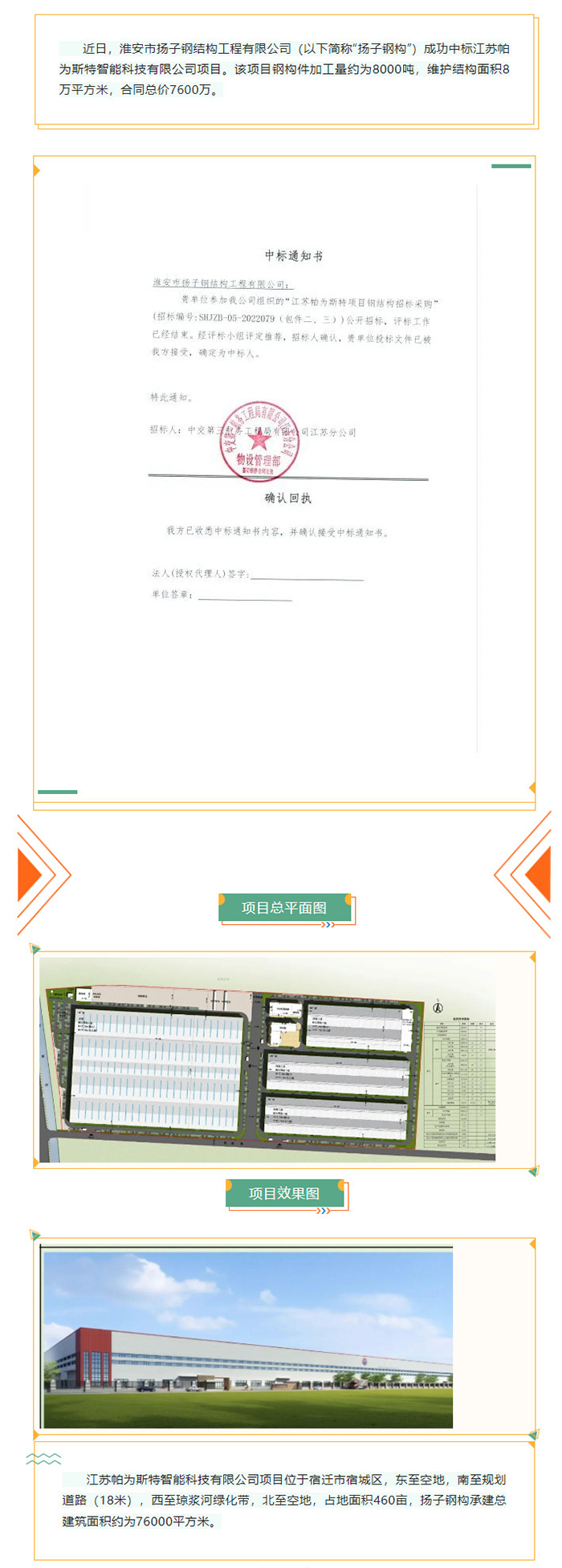 熱烈慶祝!!! 揚(yáng)子鋼構(gòu)中標(biāo)江蘇帕為斯特智能科技有限公司項(xiàng)目