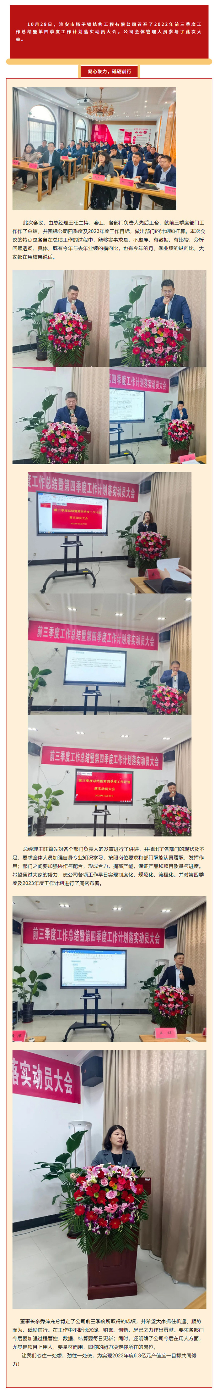 揚(yáng)子鋼構(gòu)召開(kāi)2022年前三季度工作總結(jié)暨第四季度工作計(jì)劃落實(shí)動(dòng)員大會(huì)