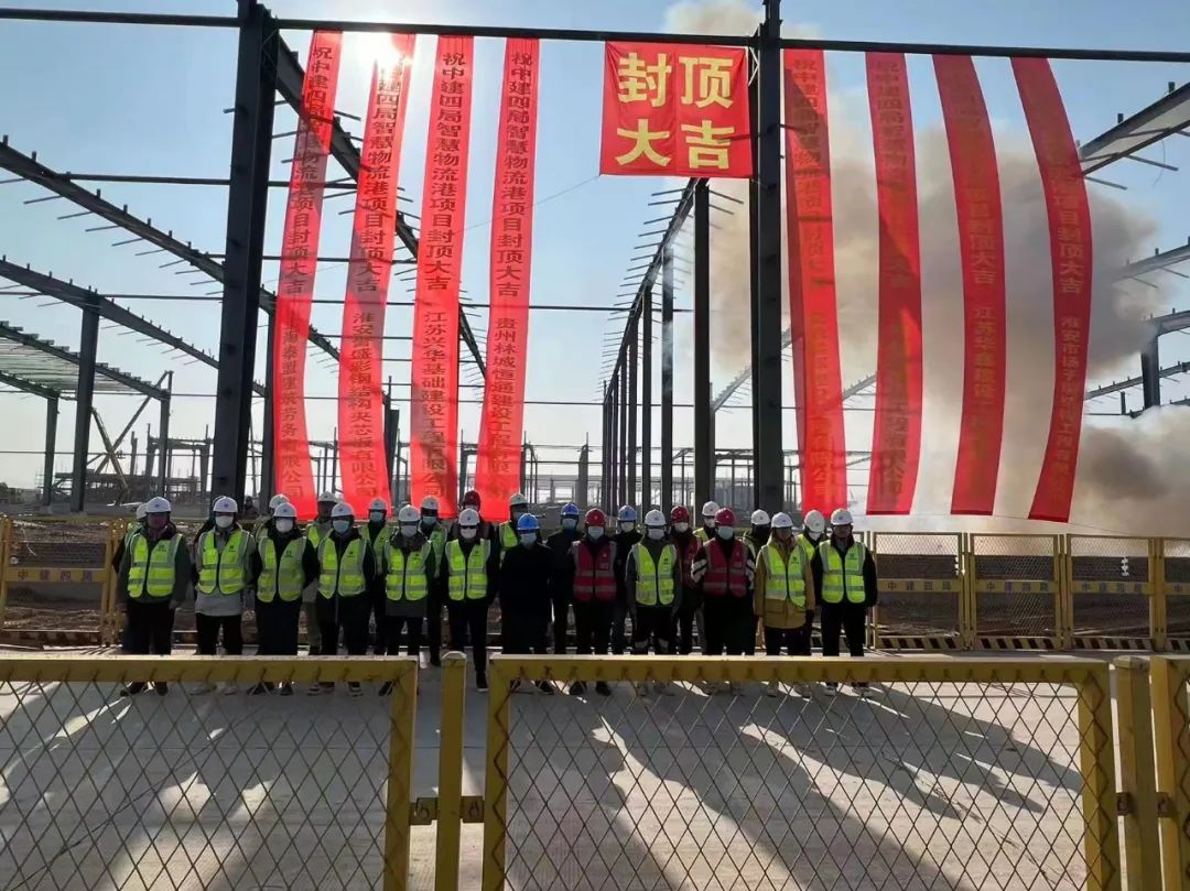 12月29日,由淮安市揚(yáng)子鋼結(jié)構(gòu)工程有限公司(以下簡(jiǎn)稱“揚(yáng)子鋼構(gòu)”)承建的淮安智慧物流港項(xiàng)目鋼結(jié)構(gòu)工程在此起彼伏、震耳欲聾的鞭炮聲中,順利完成最后一根鋼梁的安裝,標(biāo)志著智慧物流港項(xiàng)目鋼結(jié)構(gòu)工程正式封頂。