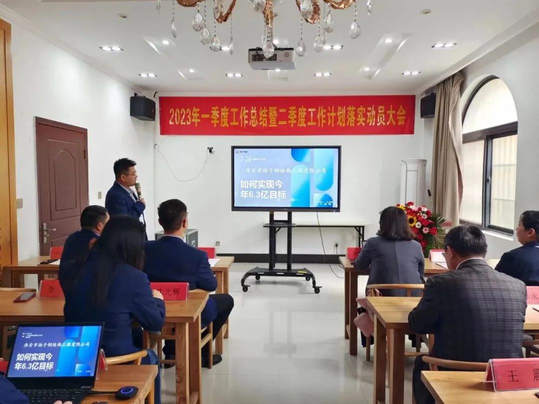 4月22日,淮安市揚(yáng)子鋼結(jié)構(gòu)工程有限公司(以下簡稱“揚(yáng)子鋼構(gòu)”)2023年第一季度工作總結(jié)暨第二季度工作計(jì)劃落實(shí)動(dòng)員大會(huì)順利召開。