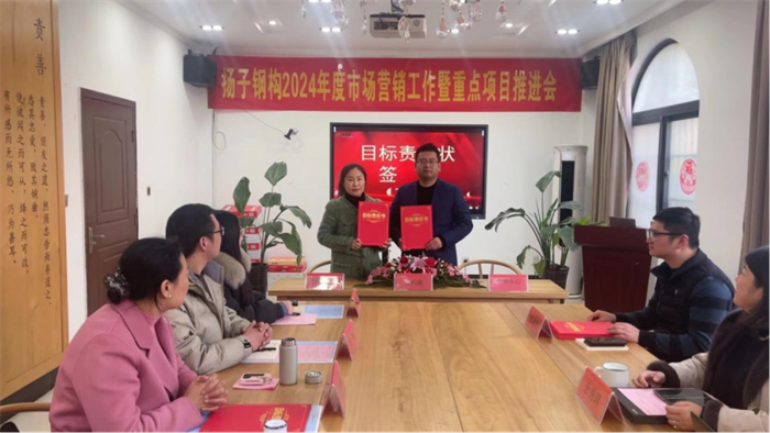 2024年2月26日,江蘇揚子鋼結(jié)構(gòu)工程有限公司召開了2024年市場營銷工作暨重點項目推進(jìn)會,董事長余秀萍,總經(jīng)理王旺、商務(wù)部及各辦事處等人員參加了會議。